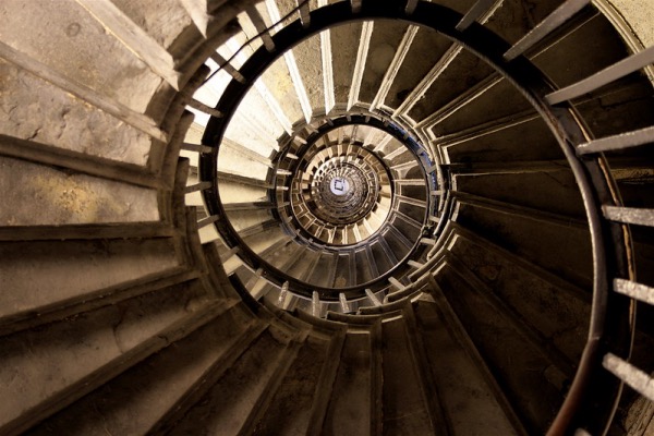 The staircase – each step of which is embedded into the wall – was built between 1675 and 1710 in the cathedral’s south-west tower by William Kempster. The ironwork is by famed French metal worker Jean Tijou.