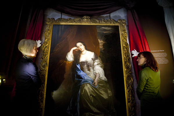 A portrait of King Charles II’s mistress, Barbara Villiers, is put into place ahead of The Wild, The Beautiful and the Damned exhibition which opened at Hampton Court Palace earlier this month. The portrait, which dates from about 1662, was painted by Sir Peter Lely – he also painted a picture King Charles II’s other principal mistress, Nell Gwyn, which is being shown together with the Villiers portrait for the first time. The exhibition, which focuses on the beauty, mistresses and debauchery of the Stuart Court, spans the reigns of the Stuarts from Charles II to Queen Anne and looks at how kings, queens and courtesans “swept away the Puritanical solemnity of the mid-17th century, and attempted to rewrite the moral code of social behaviour”. Runs until 30th September (admission is included in entry ticket; free to Historic Royal Palaces members). There are late openings on the first Monday of each month and note that the exhibition includes adult content. For more, see http://bit.ly/HvyiOE.