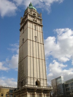 The tower, which once had a public viewing gallery (now closed) contains 10 bells, known as the Alexandra Peal, which are hung about halfway up the tower. They given by a Mrs Elizabeth A Miller, of Melbourne, Australia, in 1892 as a gift and are named after Queen Victoria, the then Prince and Princess of Wales, and other children and grandchildren of the Queen. They are rung on important college occasions.