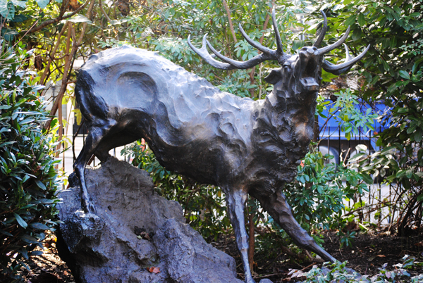 Well done to Jameson, this is indeed located in St James’s Square. Called – rather aptly – Stag, the sculpture dates from 2001 and is the work of Marcus Cornish. The larger-than-life bronze sculpture is located in the south-west corner of the West End square. For more on the work of Mr Cornish, see www.marcuscornish.com. Other statues in the square include an equestrian statue of King William III, the work of John Bacon Senior and Junior, which was installed in 1808.