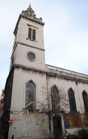St James Garlickhythe. Built according to Wren’s design, it was completed in 1682 (the tower not until 1717). It is known as ‘Wren’s Lantern’ due to its light interior. See www.stjamesgarlickhythe.org.uk.
