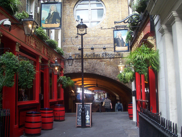 The Ship & Shovell just off the western end of the Strand takes its name from Admiral Sir Cloudesley Shovell who lived nearby in May Street.
