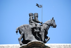 The bronze figures of the two men atop a single horse which caps the column was a representation of the image found on the order’s official. It represents the poverty of those who initially joined it – so poor they could only afford one horse for every two men, a situation which was to change dramatically in coming centuries as the order accumulated wealth, a situation which, eventually, in France, led to its downfall.