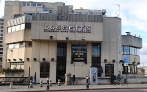 For more on the pub, see www.nicholsonspubs.co.uk/doggettscoatandbadgesouthbanklondon/. For more on the race (which we’ll be mentioning, along with more on Thomas Doggett, in more detail in upcoming posts), see www.DoggettsRace.org.uk.