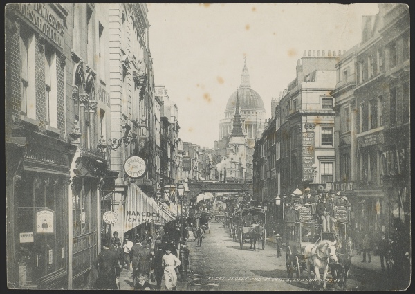 Above is a view along Fleet Street in the City of London in 1890, looking east towards Ludgate Hill and St Paul’s Cathedral. It’s one of many early photographic views of London on show in a free exhibition which can be seen in Aldgate Square until Sunday (12th August). Presented by the City of London Corporation’s London Metropolitan Archives, Victorian London in Photographs includes the earliest photograph in the LMA collection (see last Thursday’s entry for that). If you miss it at Aldgate Square, the display will be in Paternoster Square next to St Paul’s Cathedral from 14th to 23rd August. For more on the London Metropolitan Archives, follow this link. ALL PICTURES: London Metropolitan Archives, City of London Corporation