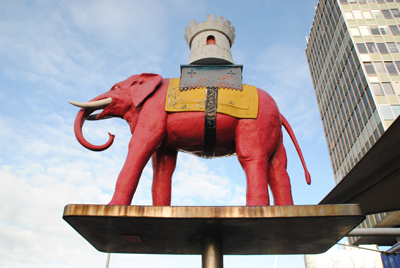 The origins of the sign of the Elephant and Castle, meanwhile, apparently comes from the mid-15th century when members of the Cutler’s Company adopted the sign of the elephant as their symbol (perhaps representing the ivory they used in their trade). The Worshipful Company of Cutlers still has an elephant carrying a castle on its back in its coat-of-arms.
